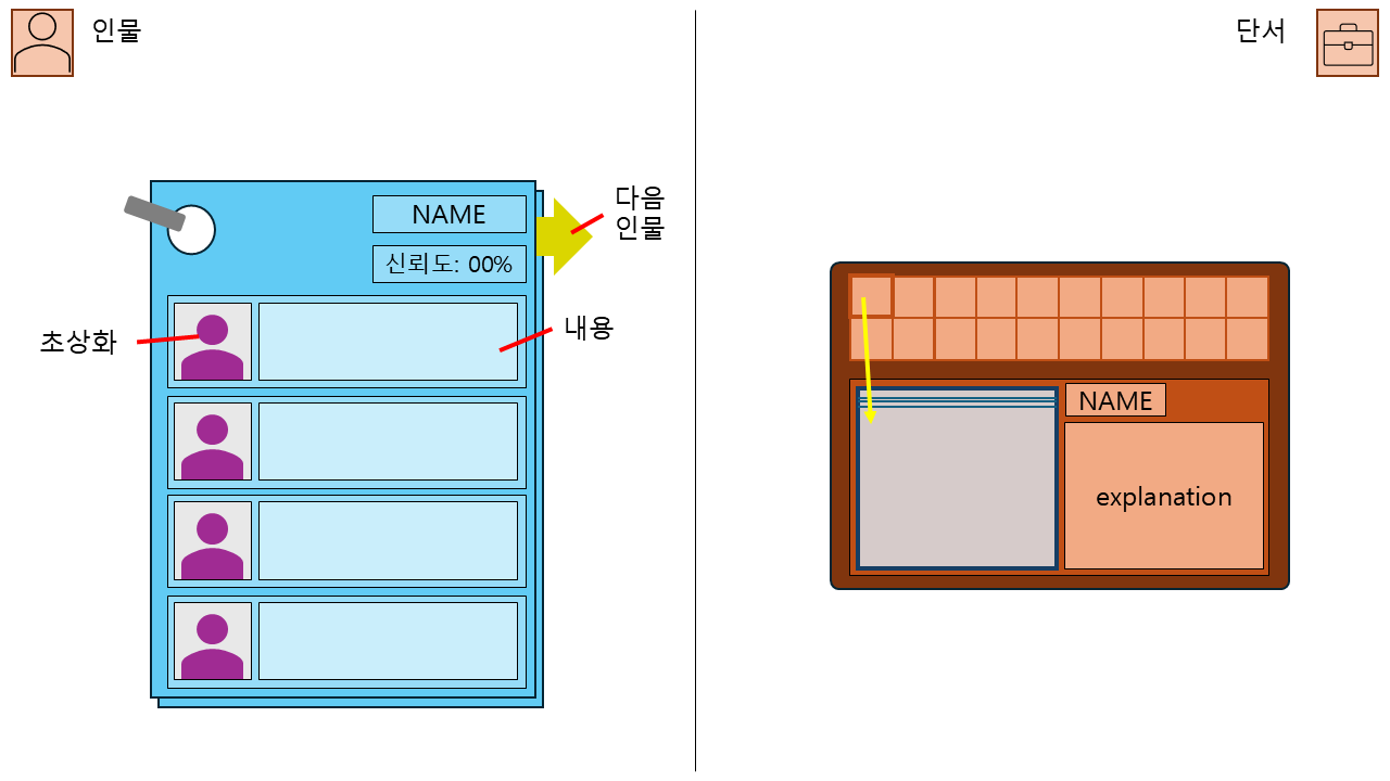 - 좌측: 습득한 단서들 확인